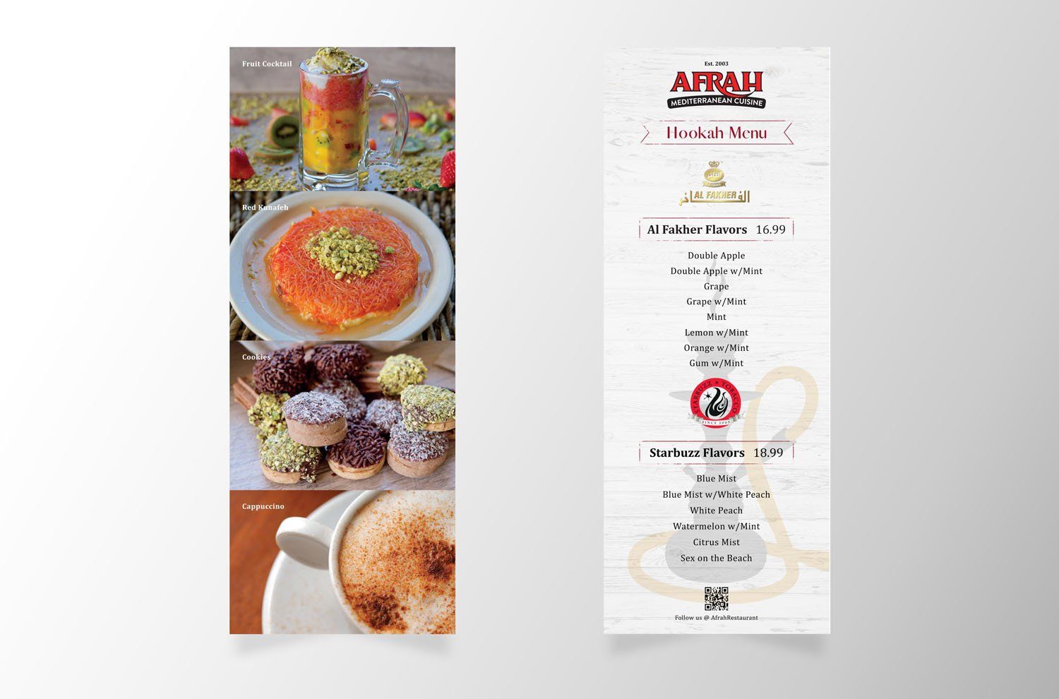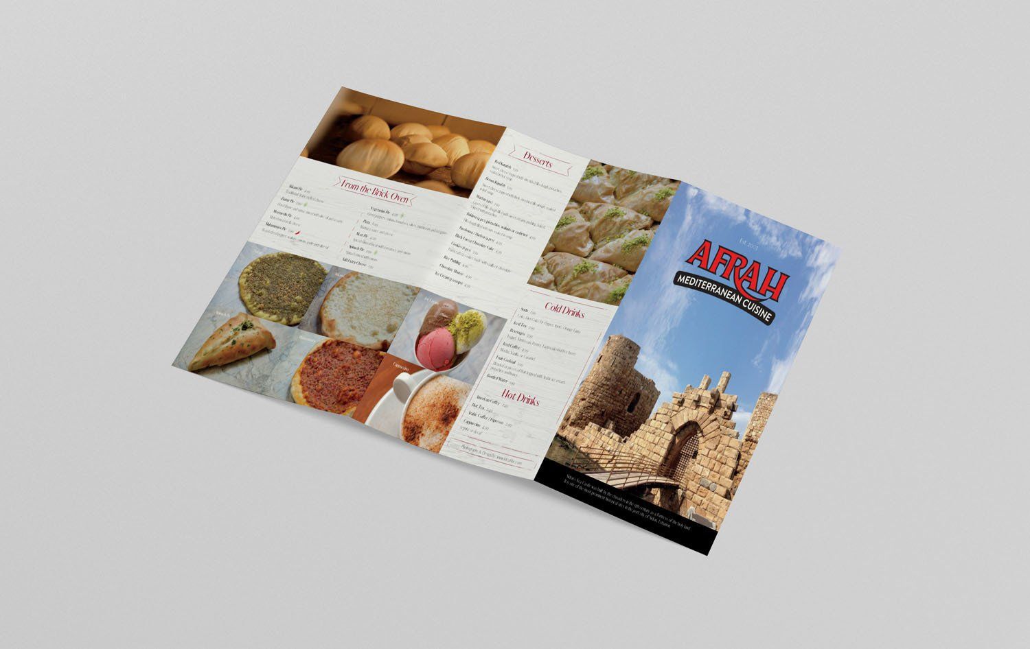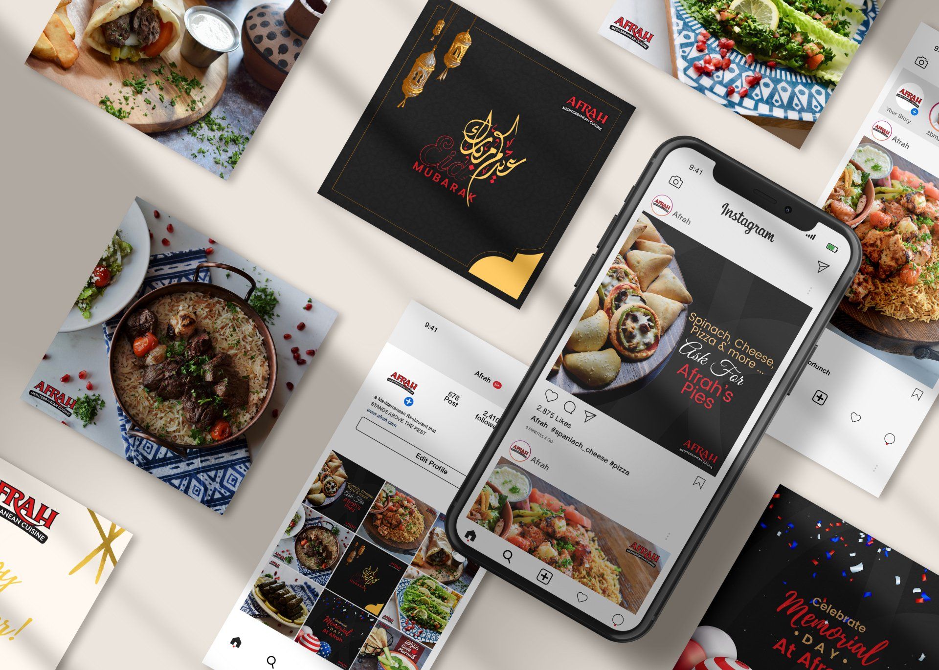 Afrah Mediterranean grill is a dine-in restaurant located in Richardson TX. Our agency partnered with Afrah to handle all their traditional and digital marketing needs. Ongoing work included social media marketing, food photography, coupons and flyer designs, menu redesigns, updates and print.