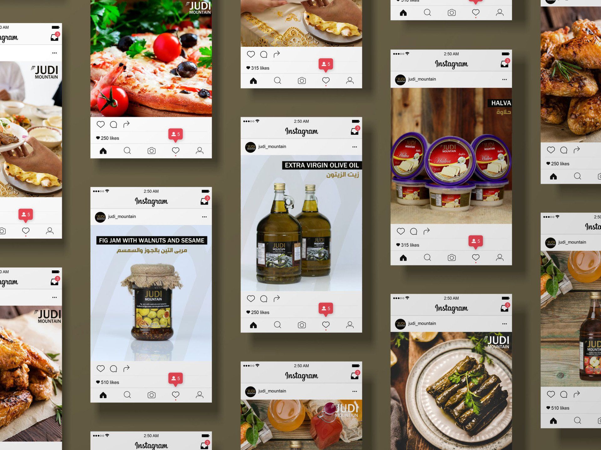 We developed unique branded posts using product photography and creative designs. Fresno Valley's approach was youthful and colorful, while Judi Mountain was more upscale and elegant.