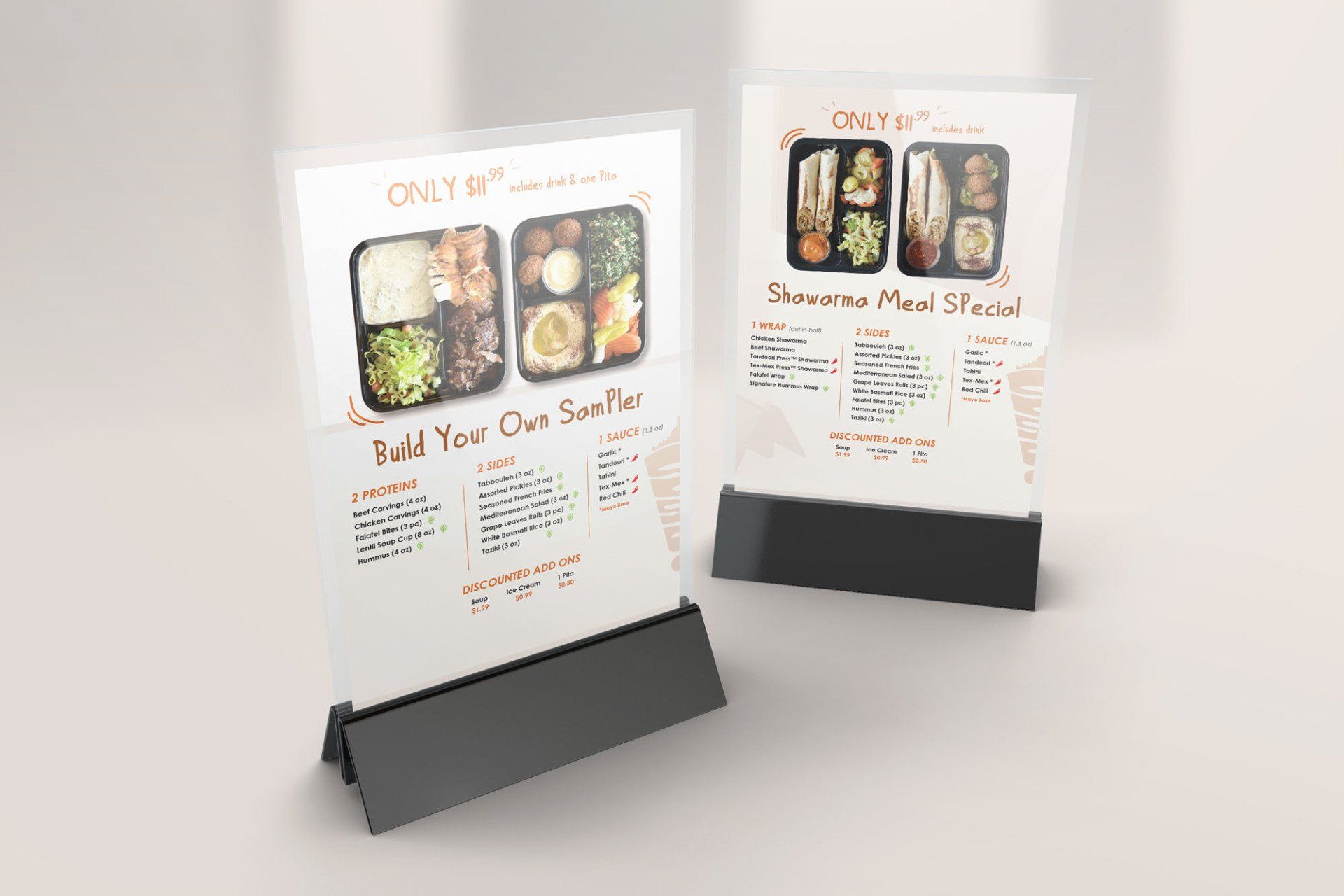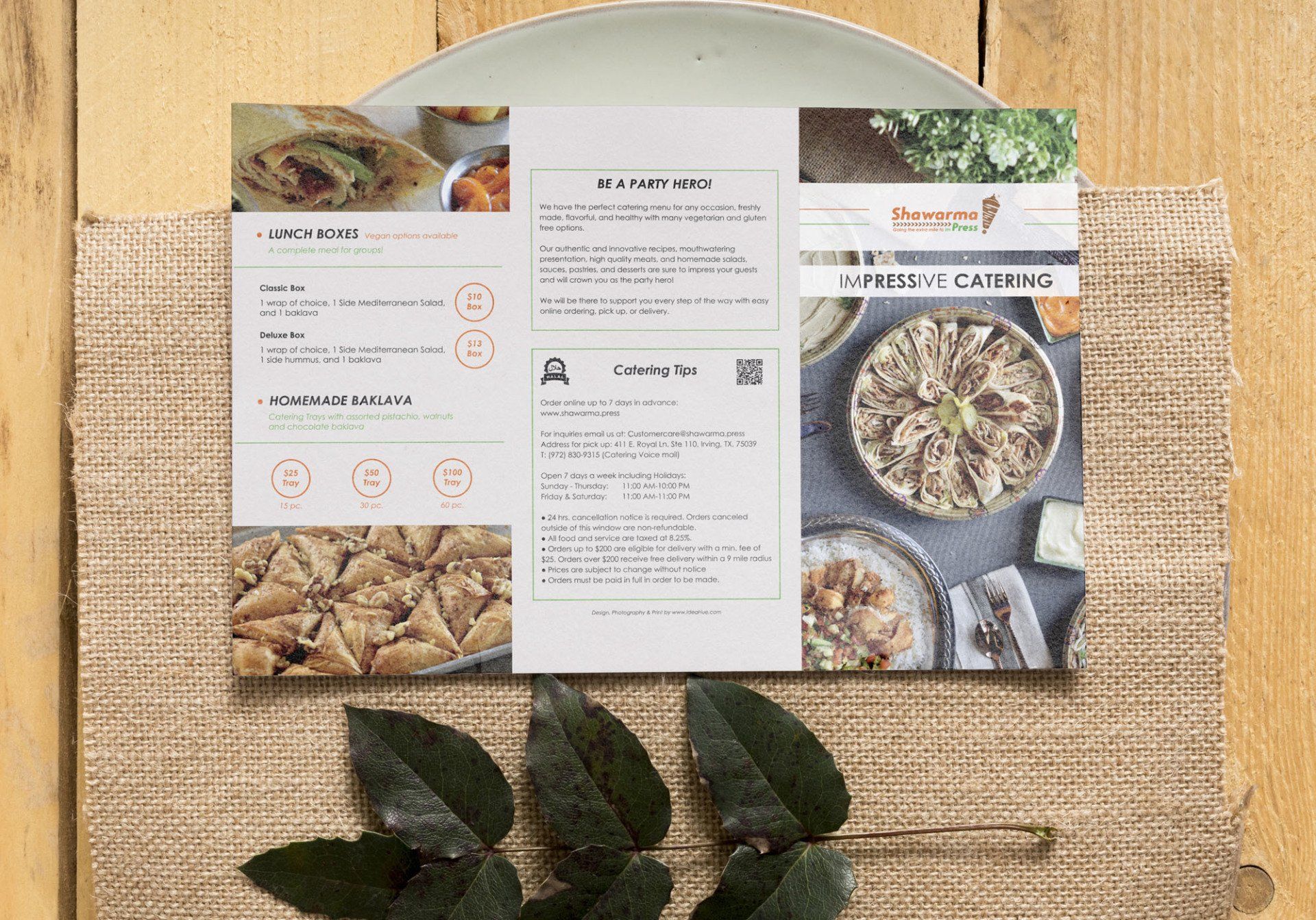 Shawarma Press is a fast casual restaurant located in Irving TX. We worked with the client to set a new style guide for food photography, social media posts and menu designs. Menu prints and digital menu boards were completely revamped.